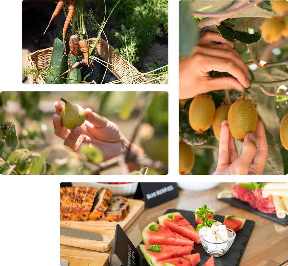 Gemüse und Kräuter kommen aus dem eigenen Garten. Obst wächst an den Bäumen direkt auf unserem Grundstück. Geerntet wird nur, was gebraucht wird - frisch, saisonal, bewusst.